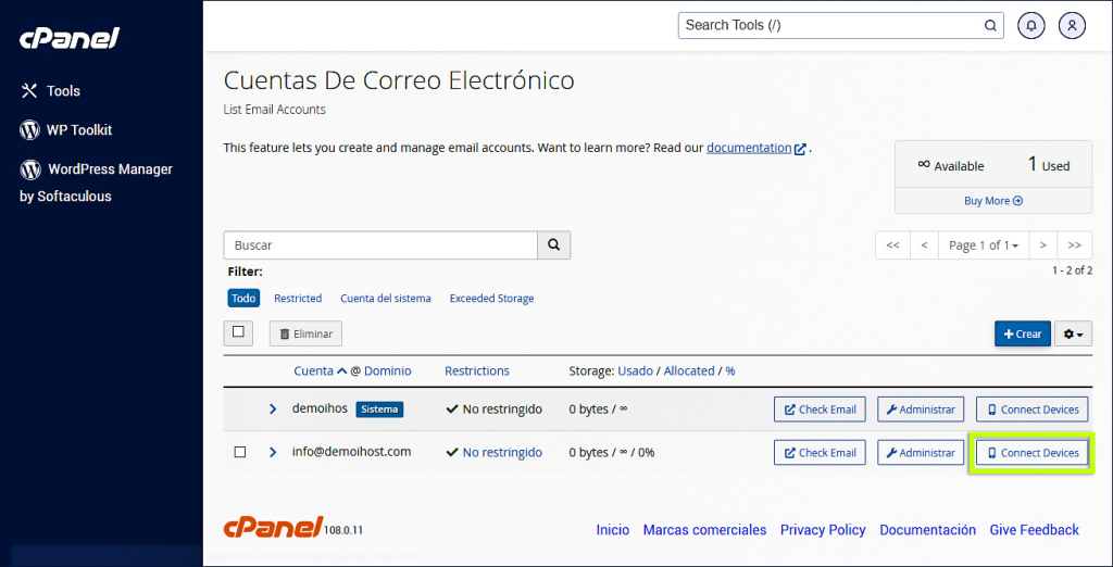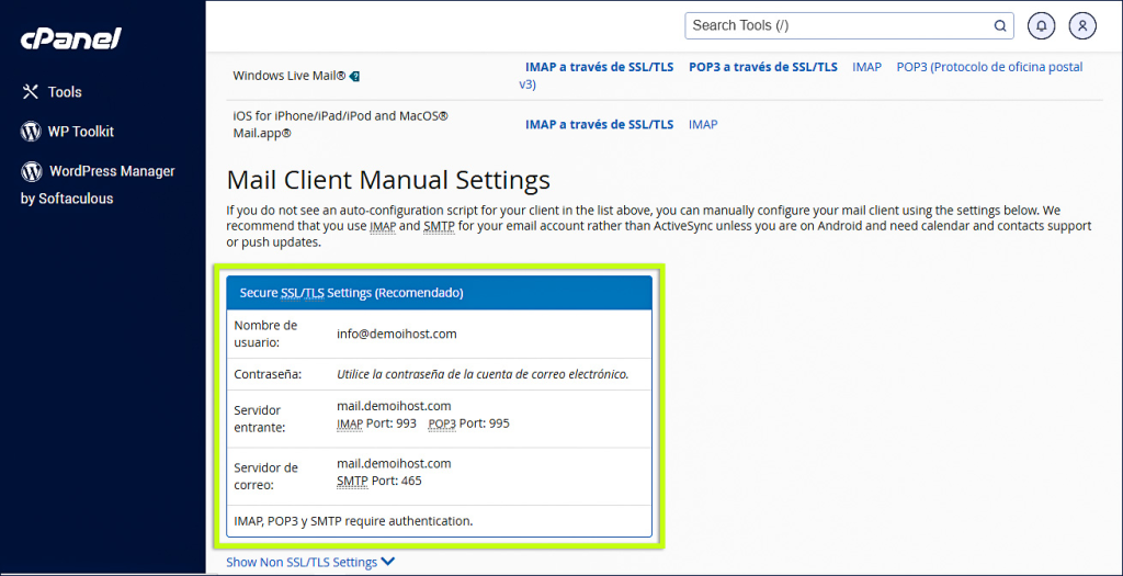 1.3 Podrás visualizar los puertos de entrada tanto para configuración POP o IMAP para enlazar los correos a otros dispositivos.