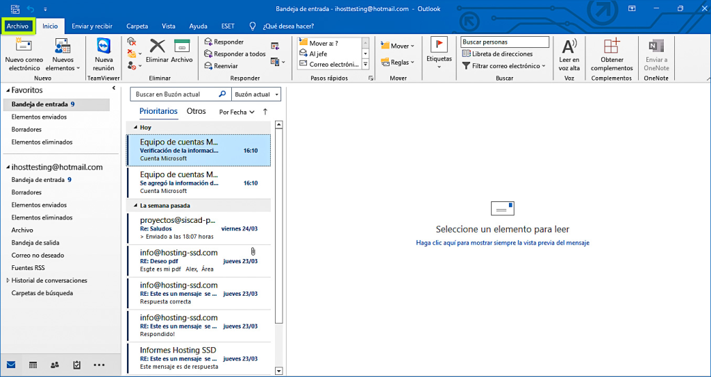 8. Cuando seleccione IMAP, sus correos son visualizados desde la web, por lo que no funciona sin conexión a internet.