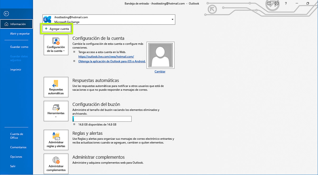 Concluida la configuración, podrá visualizar el correo en la barra lateral izquierdo de su pantalla.
