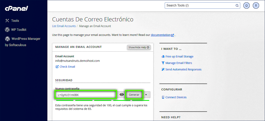 4. Puede hacer clic en Generar para crear una nueva contraseña.